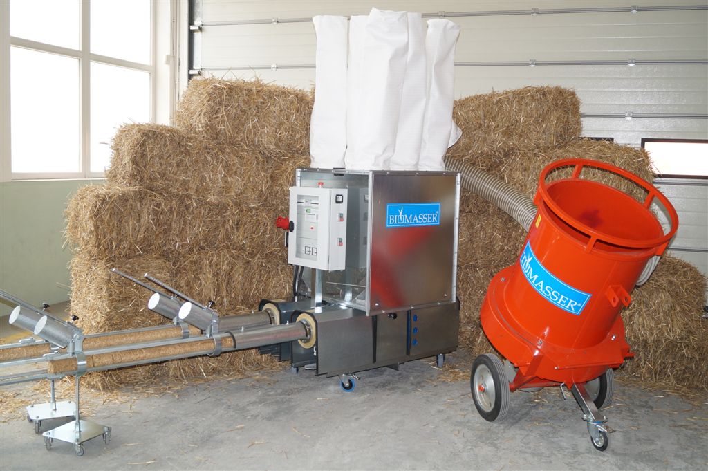 A BIOMASSER® SOLO SET teljesítménye 90kg/h Egy préshüvelyben készül a brikett.